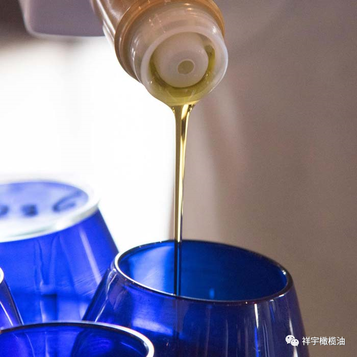 按照國際油橄欖理事會標準,采用藍色郁金香型橄欖油品鑒專用杯。